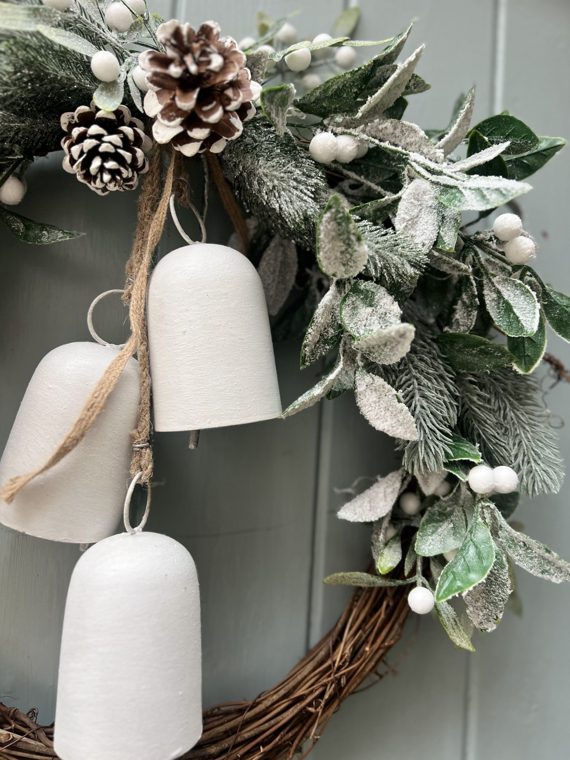 Farmhouse Christmas rustic Winter Mistletoe Willow with Bells Door wreath