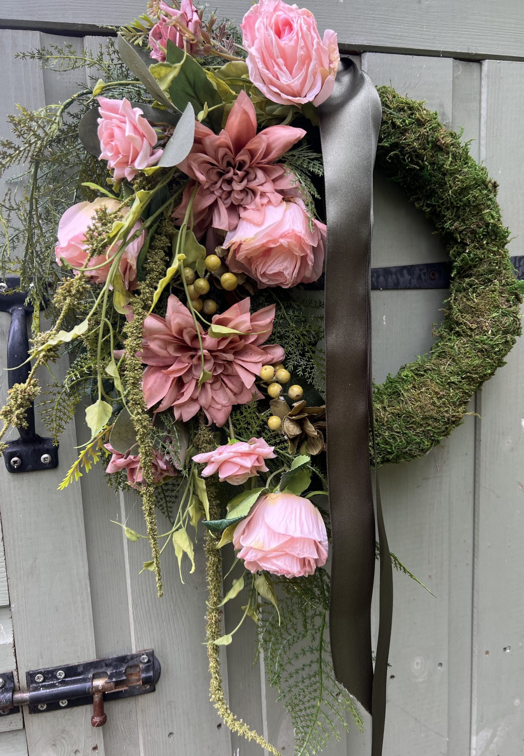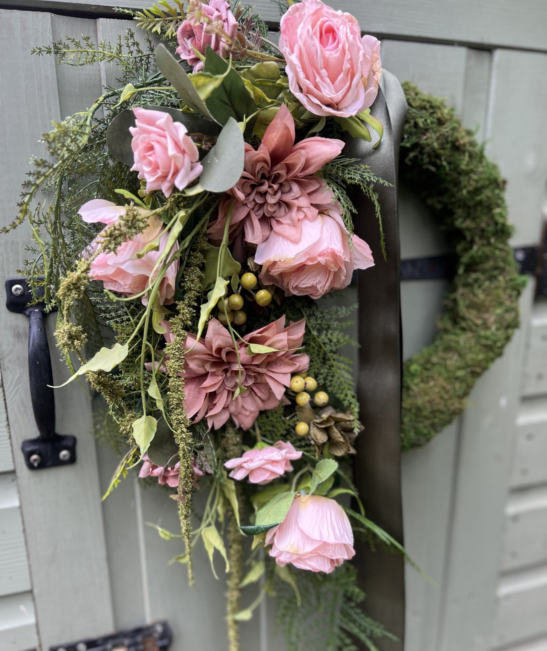 Blush Garden Moss Wreath – Bohemian Floral Door Décor