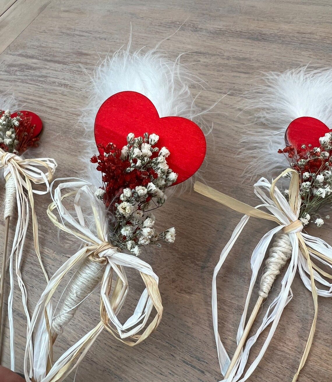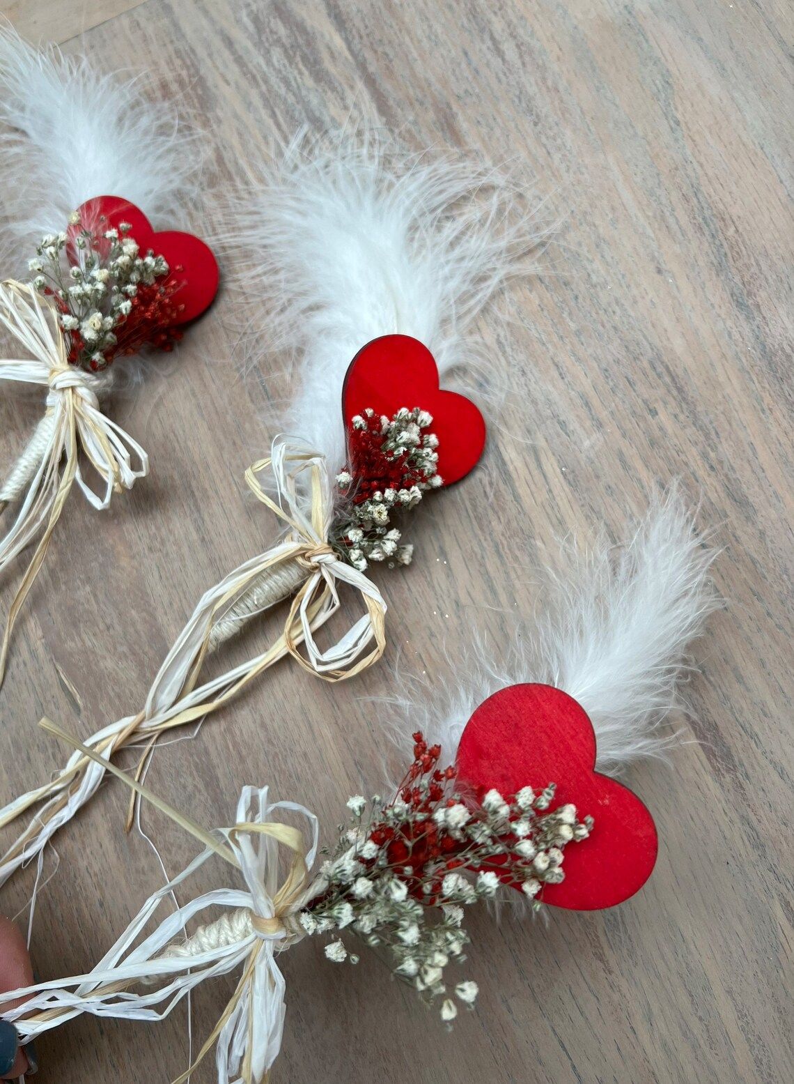 Love heart Dried flower wand choose between red raffia with feathers or rust pampas with ivory detail can be made to match your colour scheme just ask and I will create a custom order