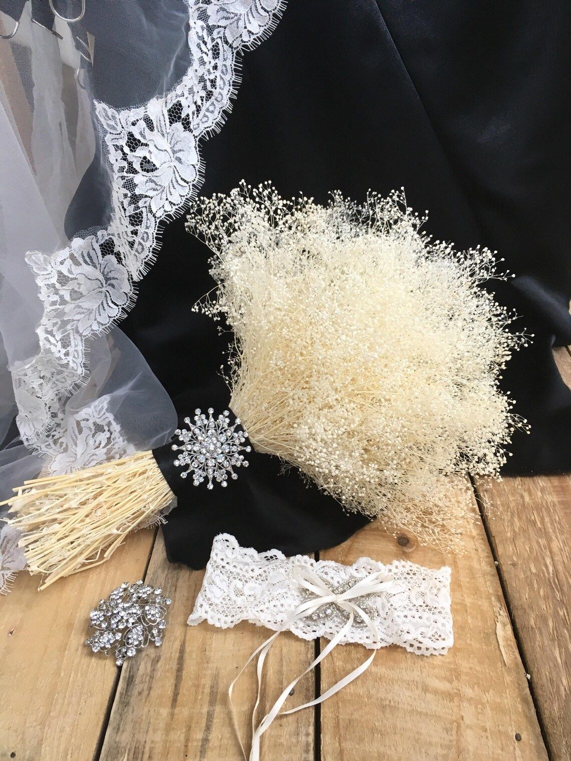 Bouquets are all unique and made to order, so each one may vary ever so slightly from the photograph due the natural way the stems in each piece fit together upon crafting.