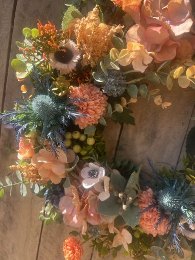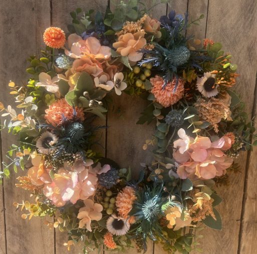 Celebrate the golden glow of late summer with our “Late Summer” Wreath — a stunning blend of warm oranges, soft corals, and cool blue tones that capture the effortless beauty of the season. Designed with a mix of realistic artificial blooms, this wreath brings a perfect balance of vibrancy and calm to any space.