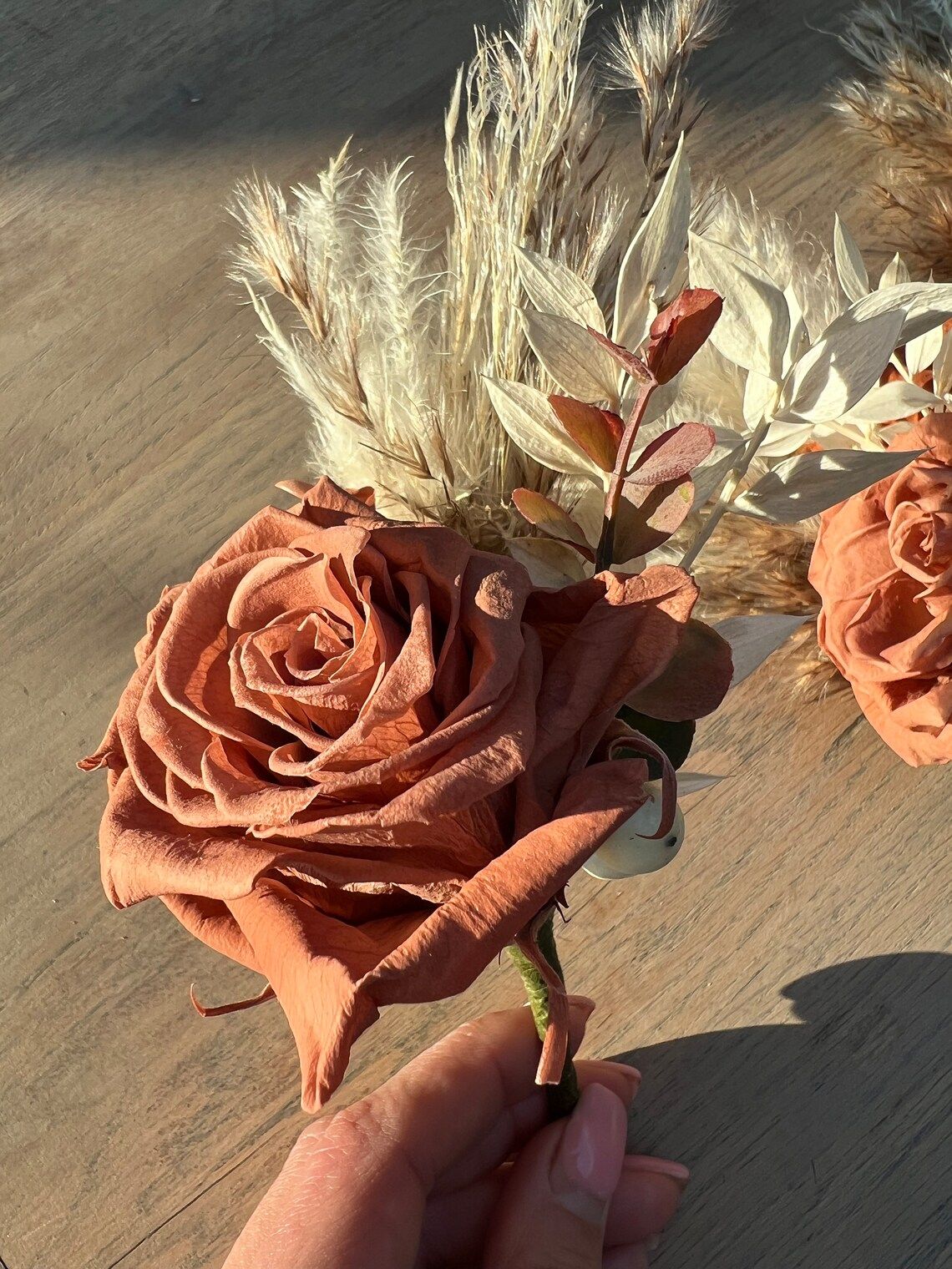 This buttonhole matches the preserved boho bouquet in my separate listing but can be made to order to suit your own colour scheme please ask if you would like us to make you a custom order in another colour of your choice