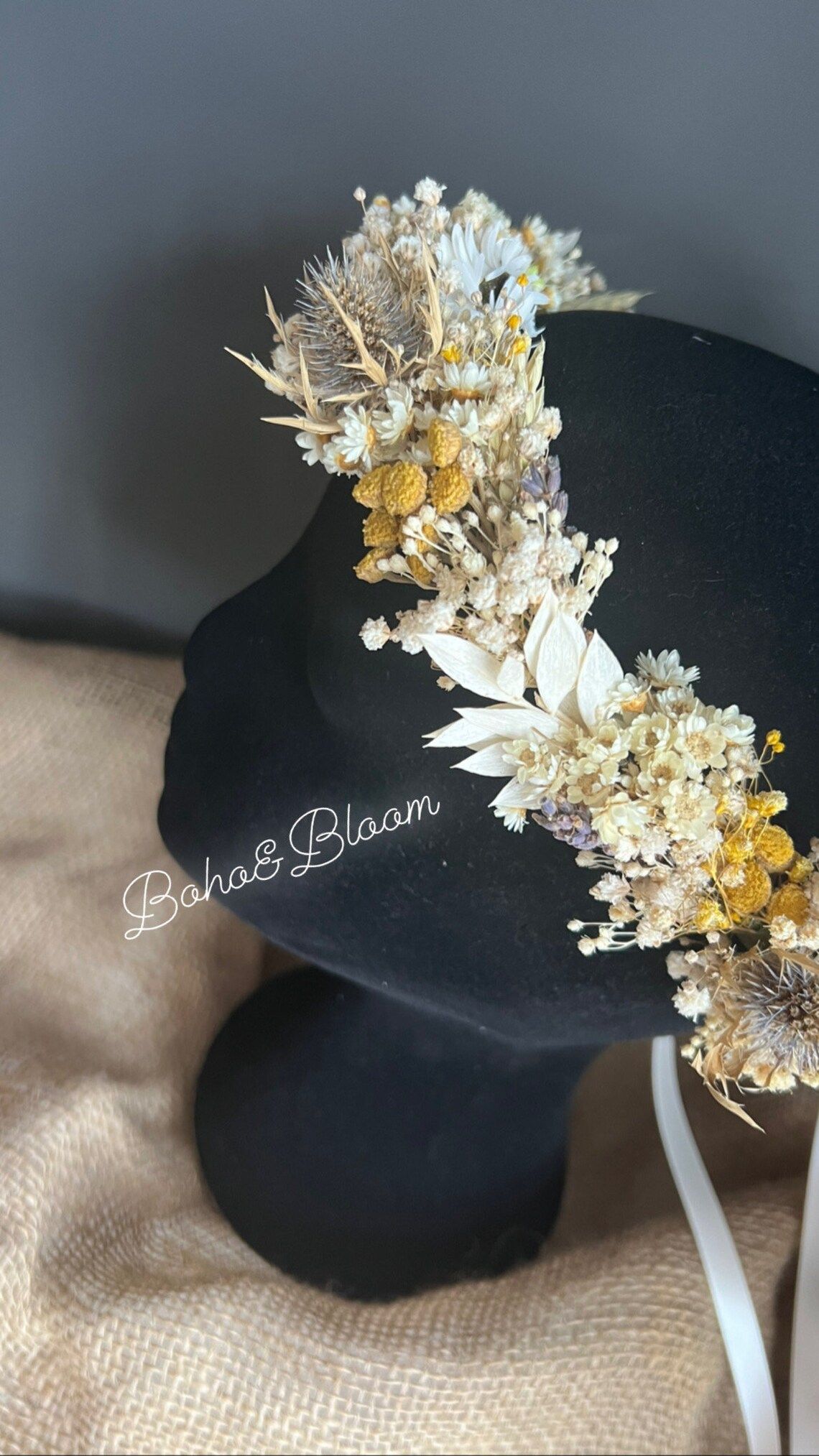 Preserved Dried Harvest flower crown Ivory Mustard gypsophila barley bridesmaid flower girl headdress floral bridal festival hair accessory