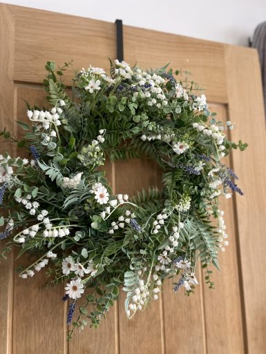 Our ‘Wild Lilly’ door wreath has been Handmade using delicate Lilly of the valley stems and ferns to create a wild open style wreath.Packed with high quality flowers which will allow this wreath to last on your door for years to come in beautiful hues of greens and white nestled on a natural twisted willow ring.