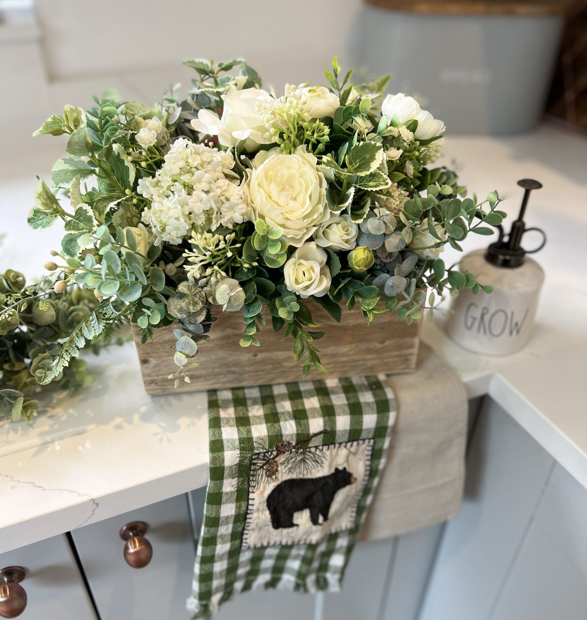 Our ‘Timeless Beauty’ arrangement has been Handmade and packed with beautiful high quality stems to create a fresh just been picked effect perfect for bringing a touch of the outdoors into your home and which will last for years to come nestled inside one of our handmade reclaimed wooden crates